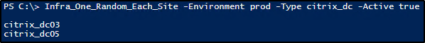 $Server_Per_Site = Infra_One_Random_Each_Site -Environment prod -Type citrix_dc -Active true