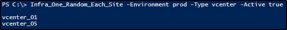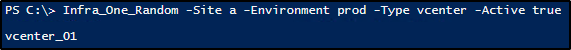 $Random_Server = Infra_One_Random -Site a -Environment prod -Type vcenter -Active true