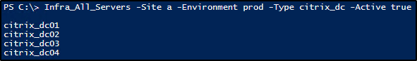 $All_Servers = Infra_All_Servers -Site a -Environment prod -Type vcenter -Active true