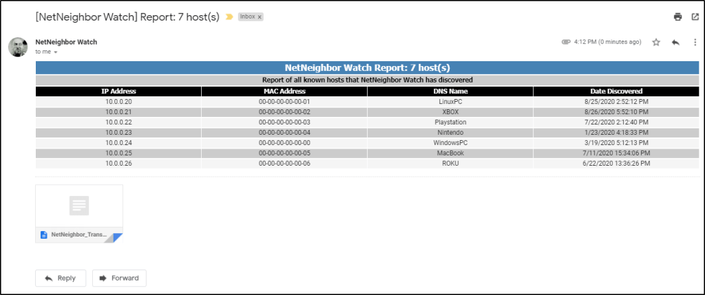 Below is an example of what you’ll see in your Gmail inbox when a new host is detected with NetNeighbor Watch.